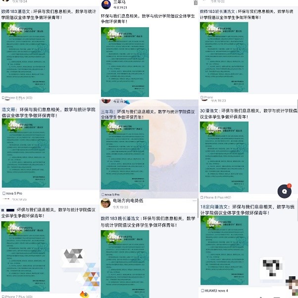 “环境就是民生,青山就是美丽,蓝天也是幸福。要像保护眼睛一样保护生态环境,像对待生命一样对待生态环境。”我院青年志愿者牢记习近平总书记的谆谆教诲,“云”集结共同战“疫”,携手肩负起时代赋予青年的责任,倡导绿色低碳生活,呵护碧水蓝天,共建生态文明,共创美丽中国。