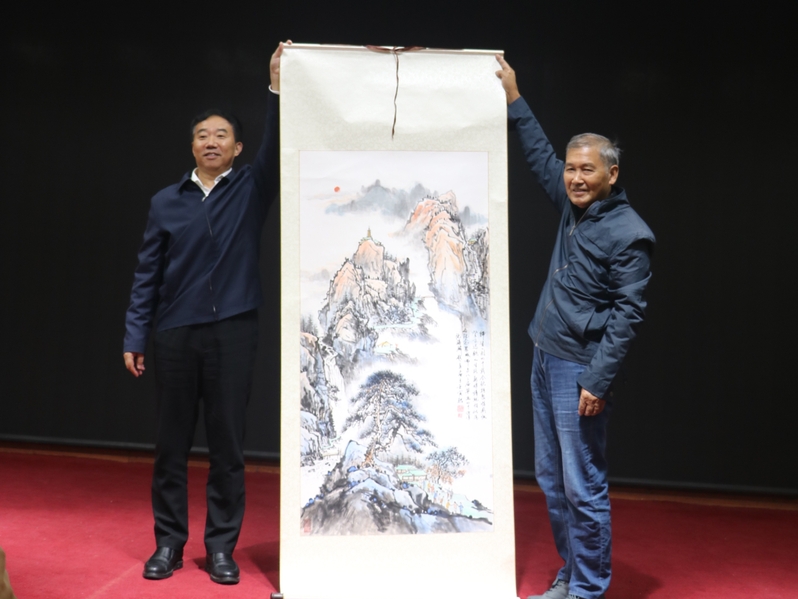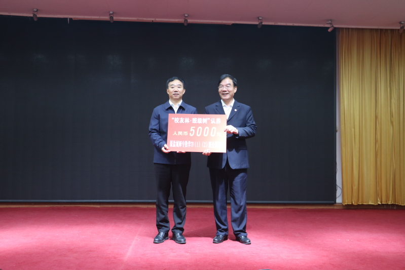 会上,我院院长姜海波简要介绍学院近几年的发展情况。作为永久纪念,数学82届全体同学还在当年的教学楼前认养了一棵班级树,并向学校敬赠画作一副,以感恩母校多年的教育与关怀。